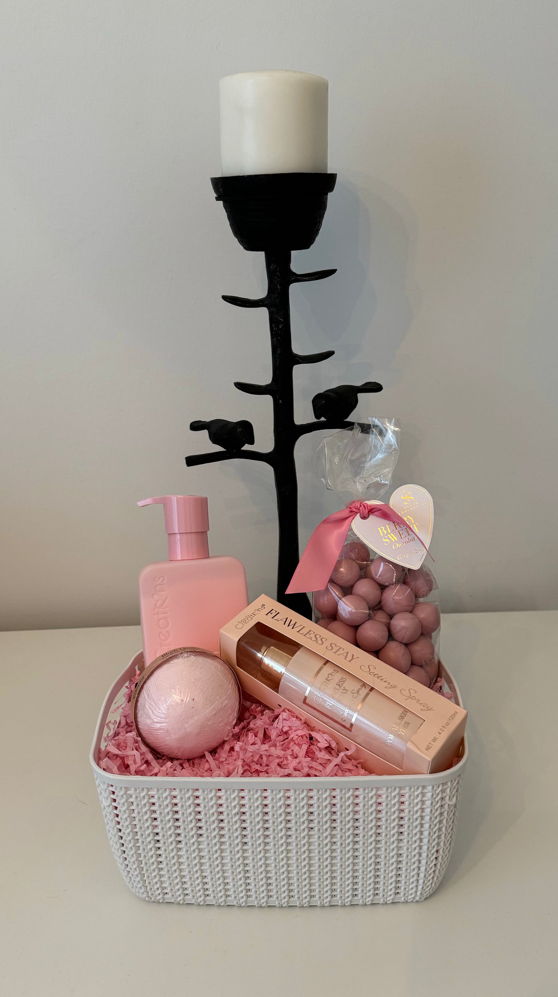 This would be a great one for the teenagers in your life! Includes Beauty Creations Pretty Peony Lotion and Flawless Stay setting spray, Blush and Oak Blush Quartz bath bomb, Saxon Berry Sweet Chocolates.